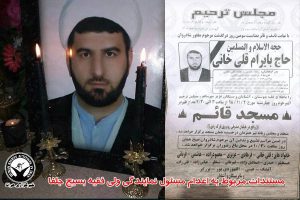 بر اساس جدیدترین گزارشات و مستندات دریافتی، بایرام قلی خانی در کسوت روحانیت از چند سال پیش به استخدام سپاه پاسداران در آمده بود و تا زمان دستگیری بعنوان نماینده ولی فقیه در بسیج شهرستان جلفا، همچنین مسئول بخش عقیدتی این نهاد فعالیت می کرد.