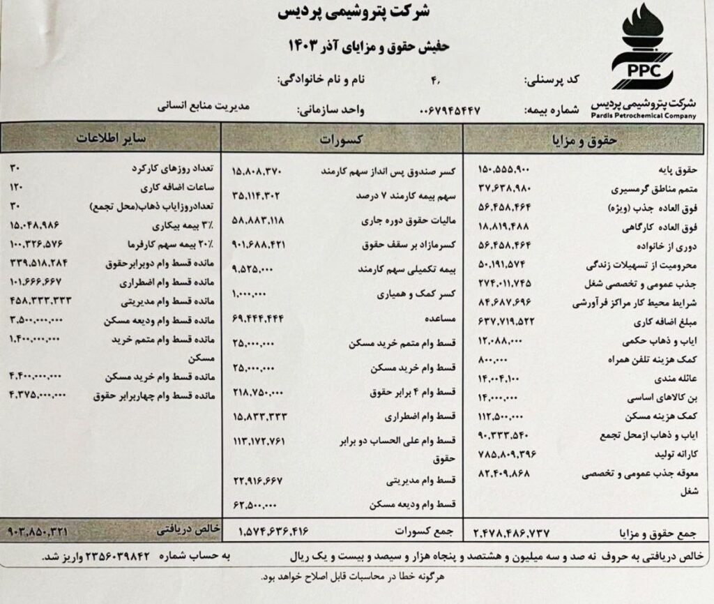 – در روزهای گذشته فیش حقوقی ۲۴۷ میلیون تومانی یکی از مدیران پتروشیمی منتشر شد که نشان میدهد پرداخت دستمزدهای نجومی در دولت اصلاحطلب مسعود پزشکیان نیز ادامه یافته است.