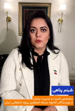 درود به مردم شریف ایران، من شبنم پناهی هستم یکی از نویسندگان طرح نظامی و امنیتی در پروژهء شکوفایی ایران. به عنوان یک متخصص سابق در حوزهء اطلاعاتی و امنیتی ایالات متحده آمریکا و کارشناس امنیت و تداوم کسب و کار، سال ها در زمینهء «مدیریت ریسک ثبات سازمانی و امنیت ملی» فعالیت داشته ام.