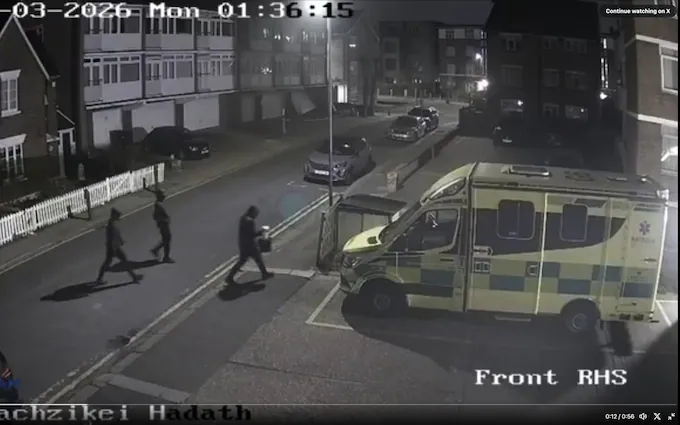 ۲۳ مارس ۲۰۲۶ (لندن): چهار آمبولانس در مقابل یک کنیسه به آتش کشیده شدند. منابع سفارت اسرائیل اعلام کردند این آتشسوزی نشانههای حملات تحت حمایت ایران را دارد.
